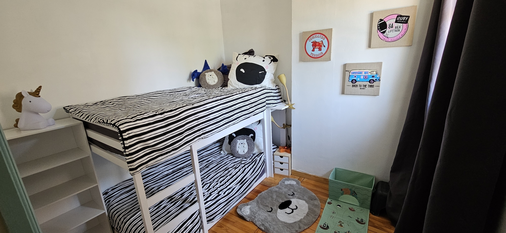 Deux lits superposés sont présents dans cette petite chambre cocon.
