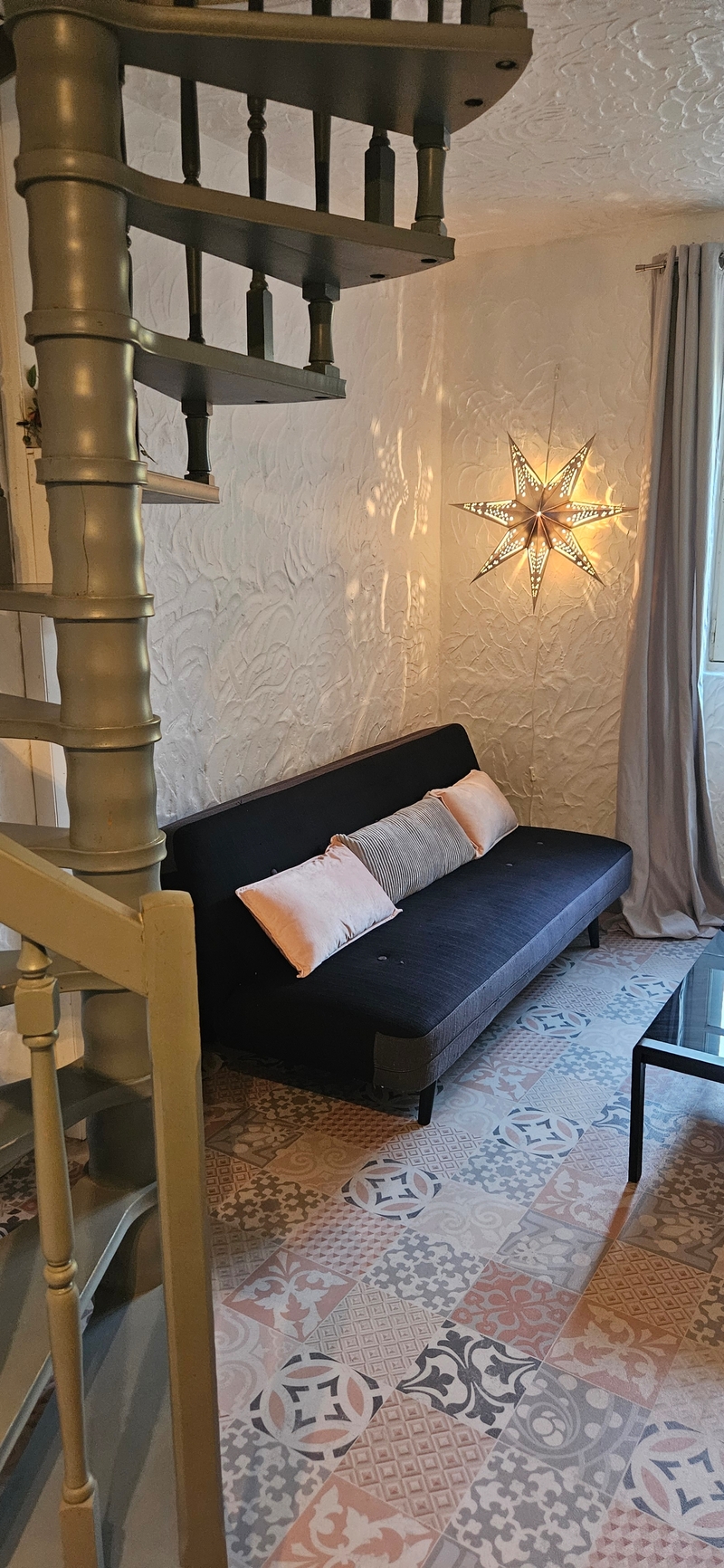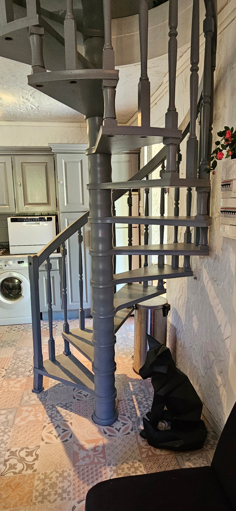 Un petit nid d'aigle perché en haut d'un escalier en colimaçon, avec un lit double de 140*190cm