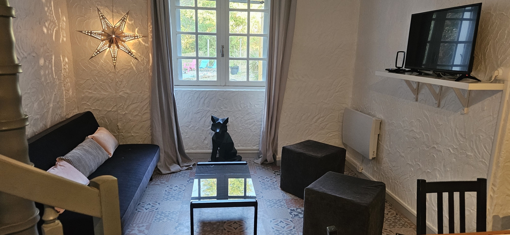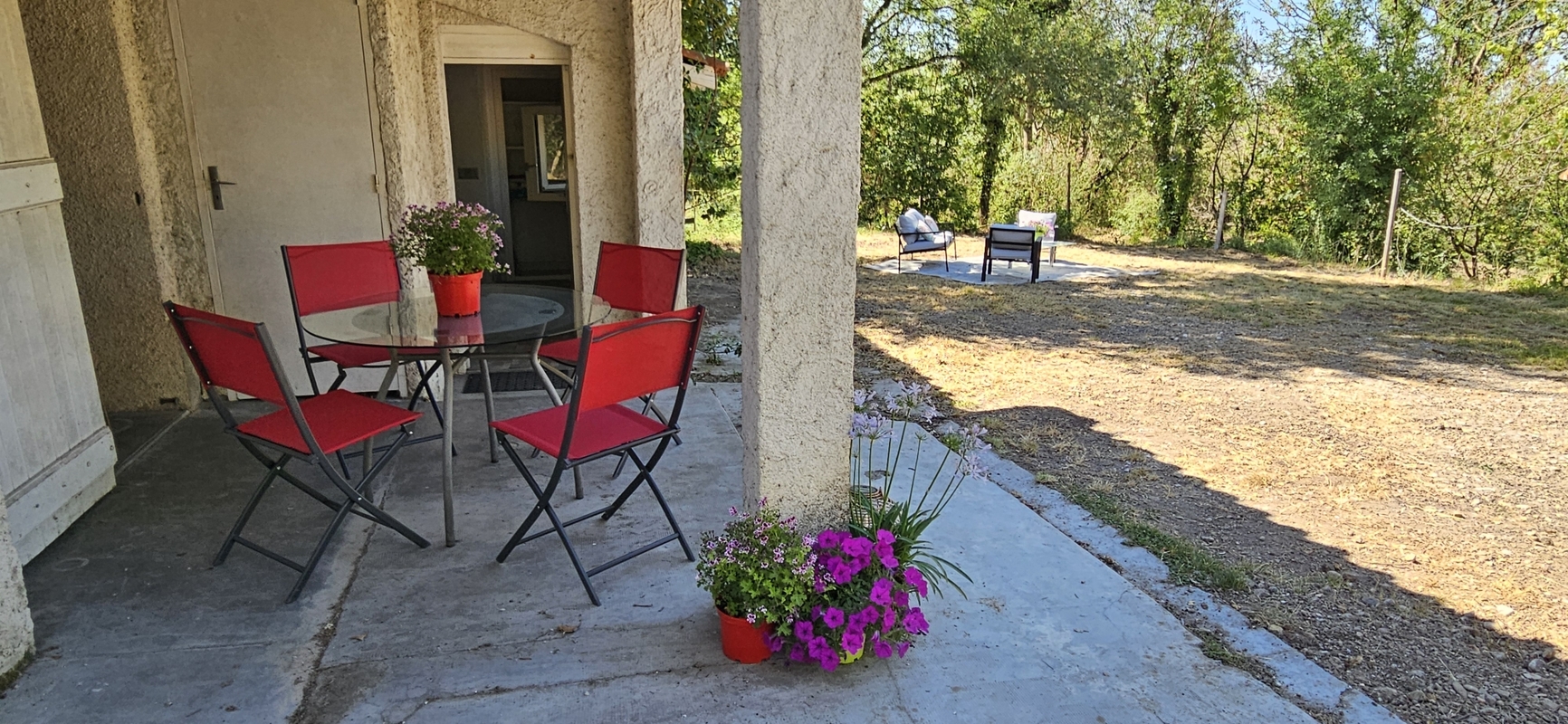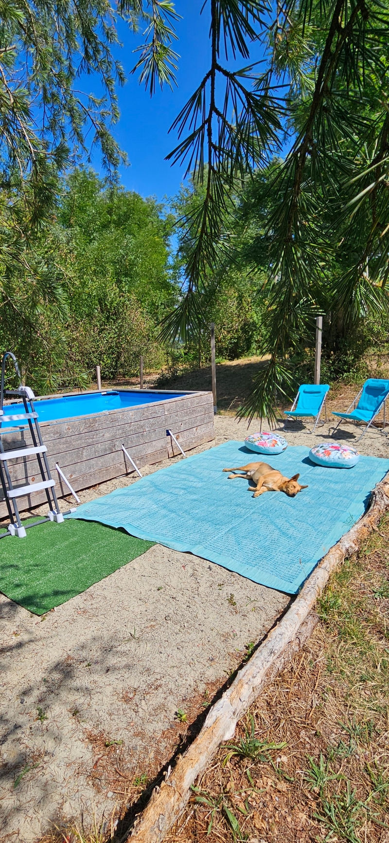 Le petit havre de paix est mitoyen d'un autre gîte et partage la piscine avec ce dernier quand arrivent les beaux jours.