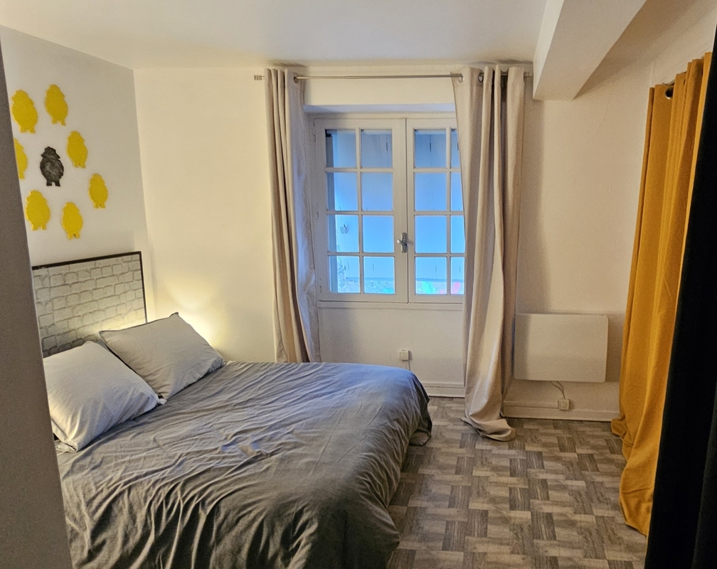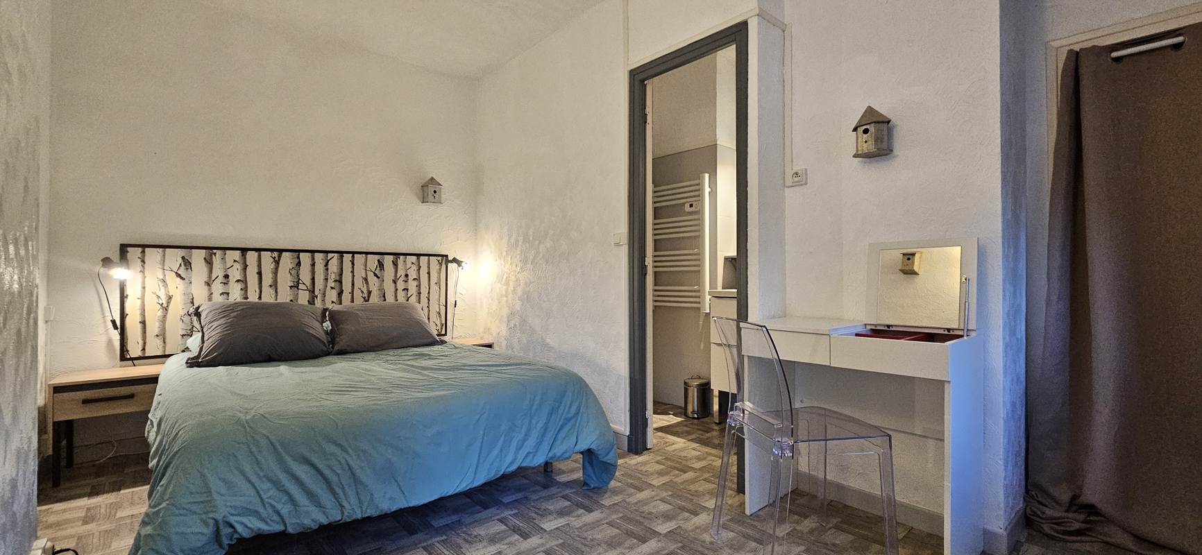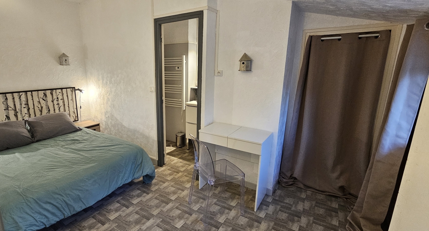 Une chambre très calme située à côté de la terrasse, avec un accès extérieur, un lit double de 140*190cm.