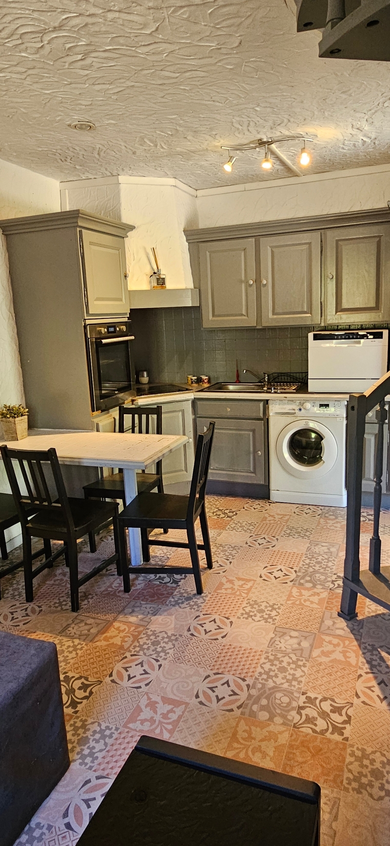 Lave linge, lave vaisselle, congélateur, micro-onde, four, réfrigérateur, cafetière, bouilloire, cafetière Nespresso, vaisselle et couverts, grille-pain, plaque de cuisson, ustensiles de cuisine, plaques à induction, tables à repasser, fer à repasser