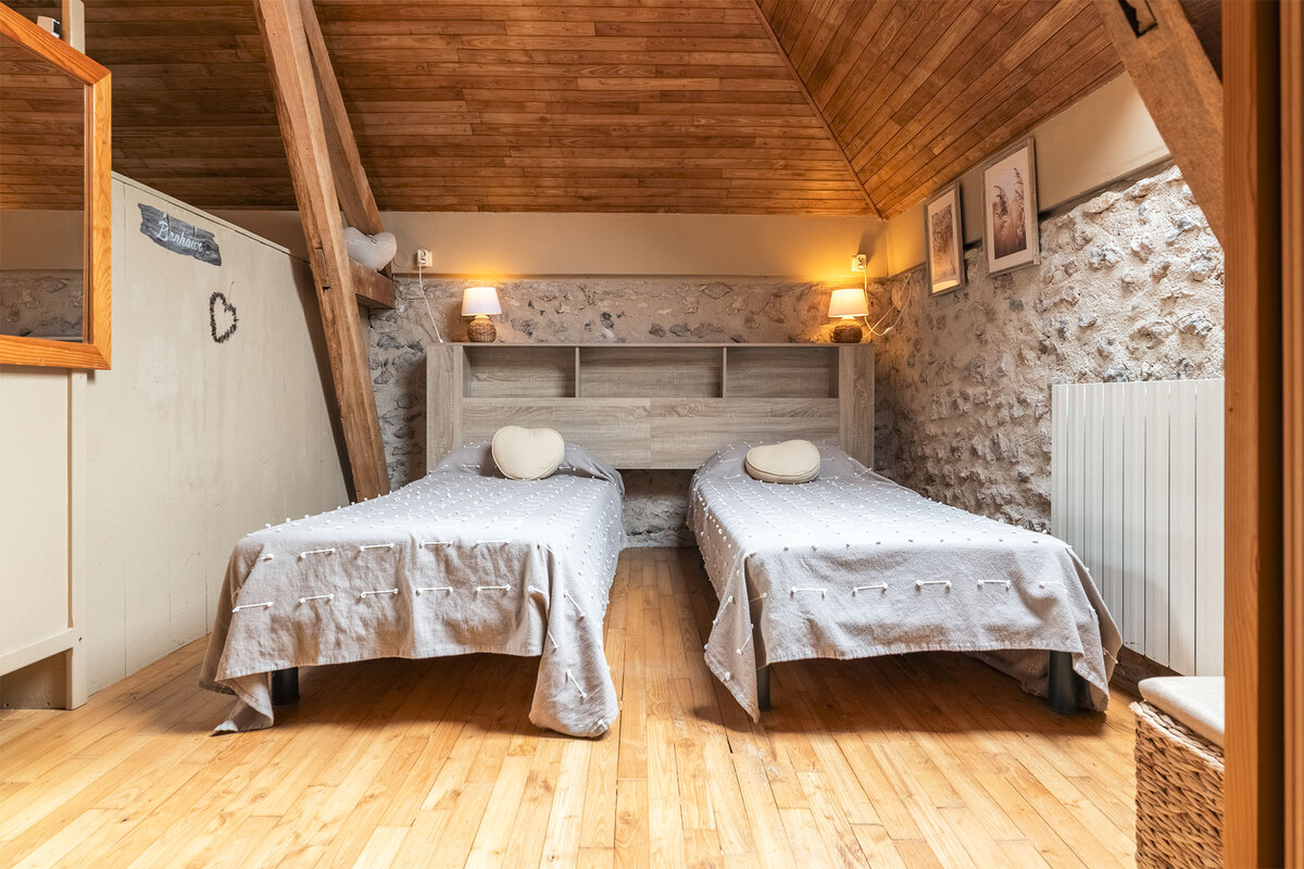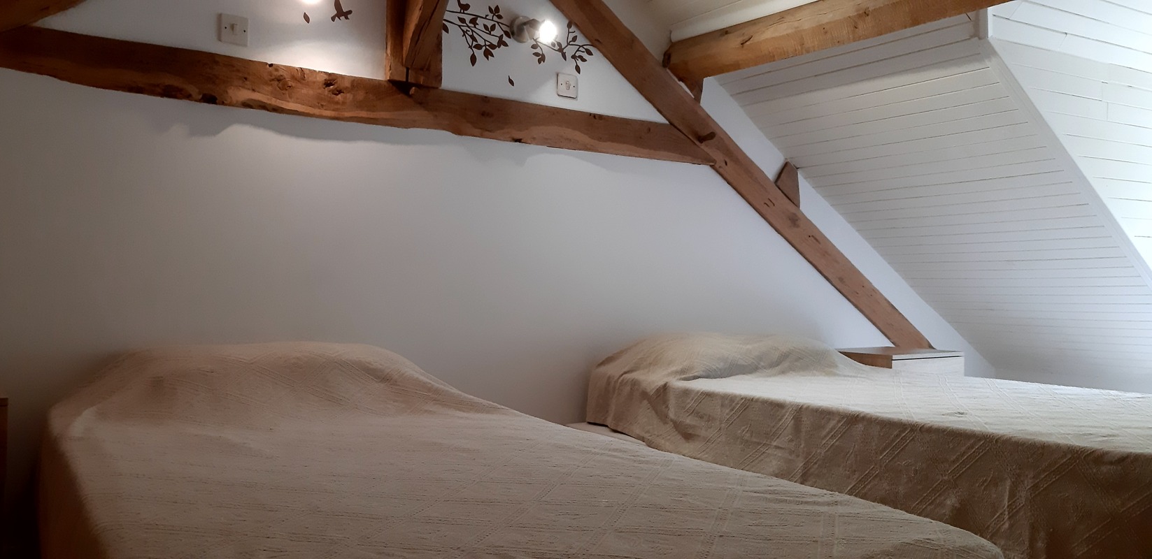 2 lits de 80 pouvant être réunis pour en faire un grand lit de 160.