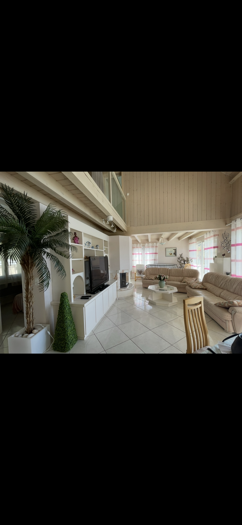 Le grand appartement possède 4 grandes chambres individuelles plus un mezzanine . A l'étage une grande chambre avec 2 lits en 140, un matelas d'appoint et un lit bébé à barreaux; à côté en mezzanine 1 lit en 140 occulté avec un grand rideau lourd et 1 chambre avec 1 lit en 160 un matelas d'appoint, canapé ;au Rez de chaussée 2 chambres avec 1 lit en 140 . DEUX salles de bain dont 1 avec baignoire balnéo , 2 WC, placards miroirs aux chambres, volets roulants électriques. Cuisine intégrée avec lave vaisselle, plaque vitro céramique, micro-ondes, four pyrolyse, 2 refrigérateurs. Mais aussi lave linge, TV grand écran équipé satellite, wifi ( 20 € en sus au contrat) 3 canapés en cuir et deux fauteuils avec leurs tables de salon; grande terrasse avec vue plongeante et panoramique sur le lac avec tables et fauteuils, store solaire . Une autre grande terrasse face au lac avec grande table et transats , jardin.