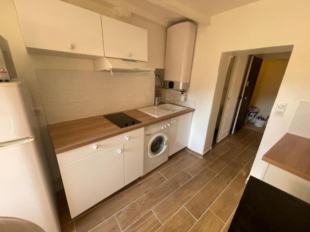 Lave linge, congélateur, micro-onde, four, réfrigérateur, cafetière, vaisselle et couverts, plaque de cuisson