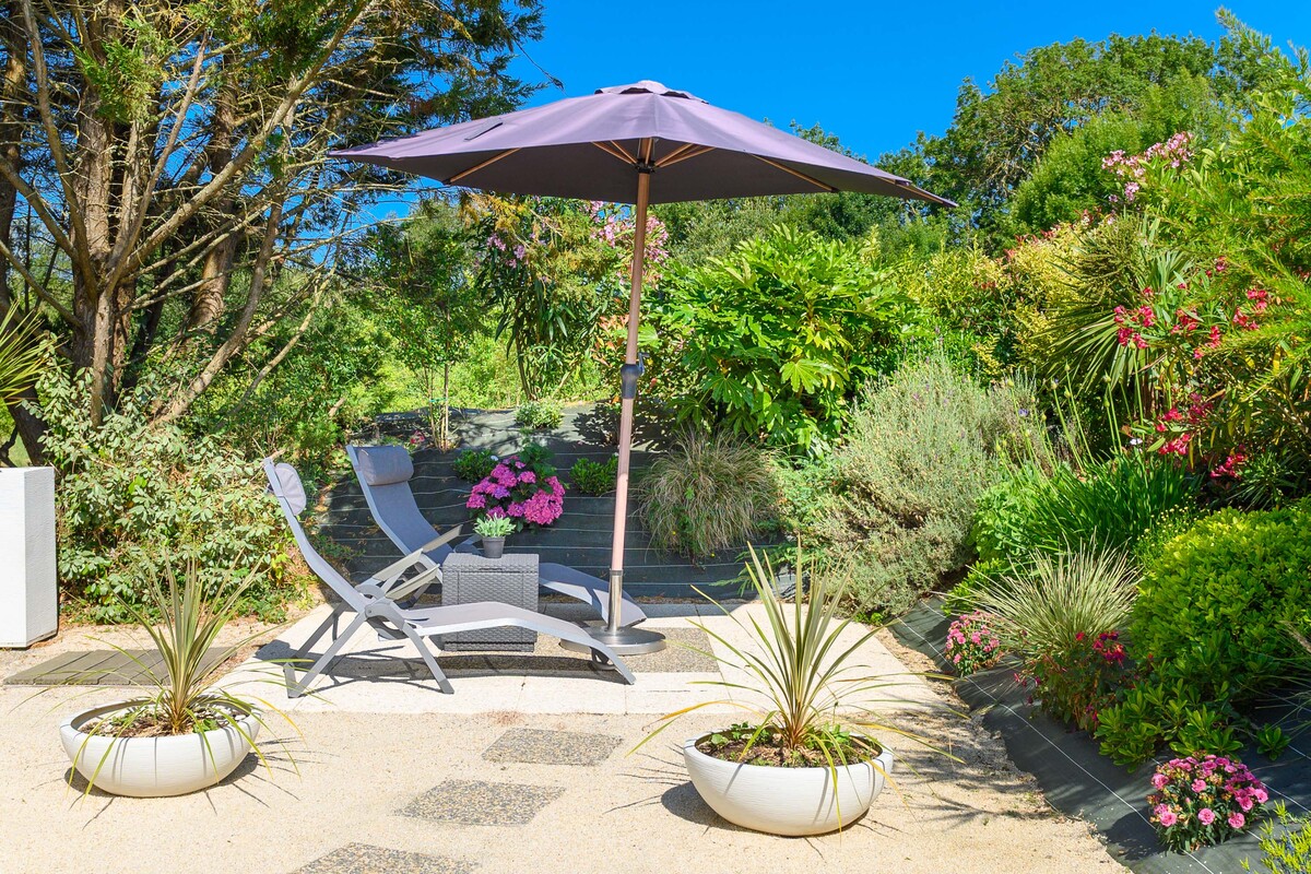 Terrasse, mobilier de jardin, plancha, transats, jardin, terrain clos