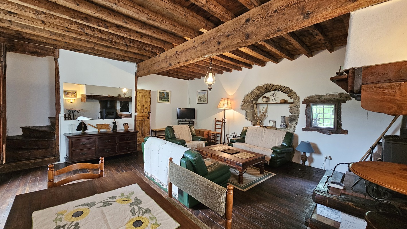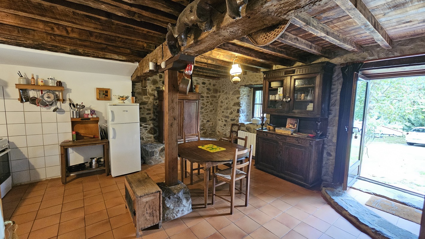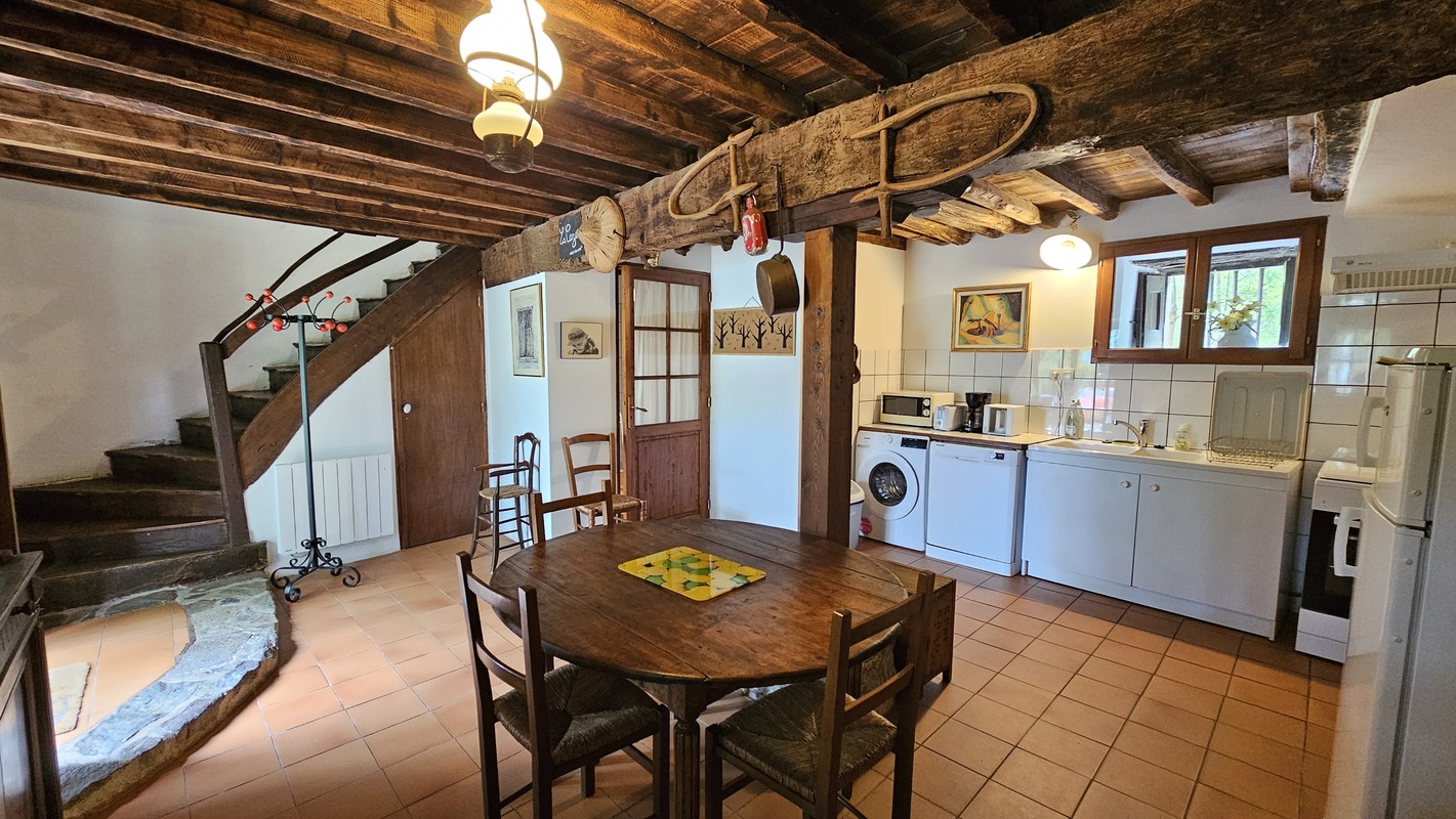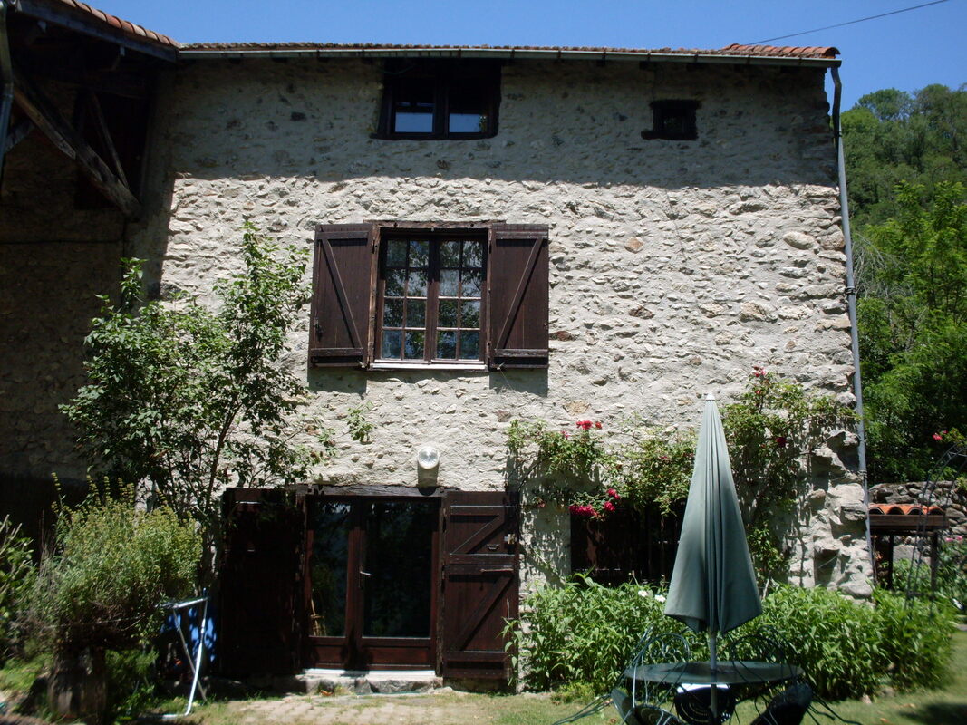 Cette ancienne métairie de la fin du XVIII éme, de 100 m2, mitoyenne à un corps de batîments constitué de granges, d'une résidence secondaire et d'un autre gite (la grange au poulailler), bénéficie, en haut du village de mercus, d'une exposition plein sud et d'une vue sur les Pyrénées et l'Ariège.