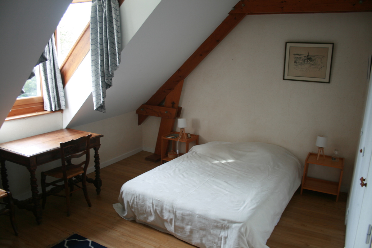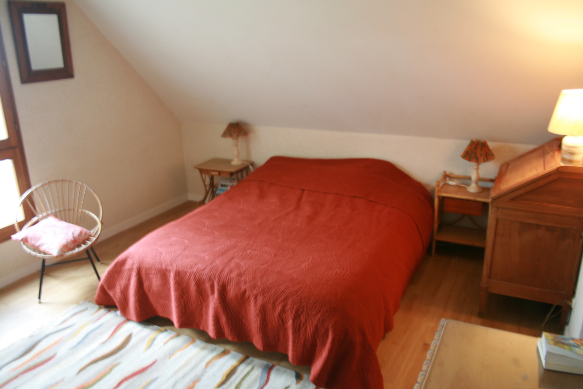 chambre à lit double - coin bureau - coin lavabo - salle de bain & toilettes à l'étage - chauffage électrique