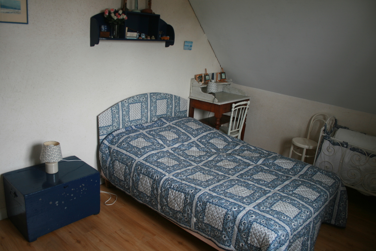 chambre côté ouest - coin lavabo - salle de bains et toilettes à l'étage - chauffage électrique