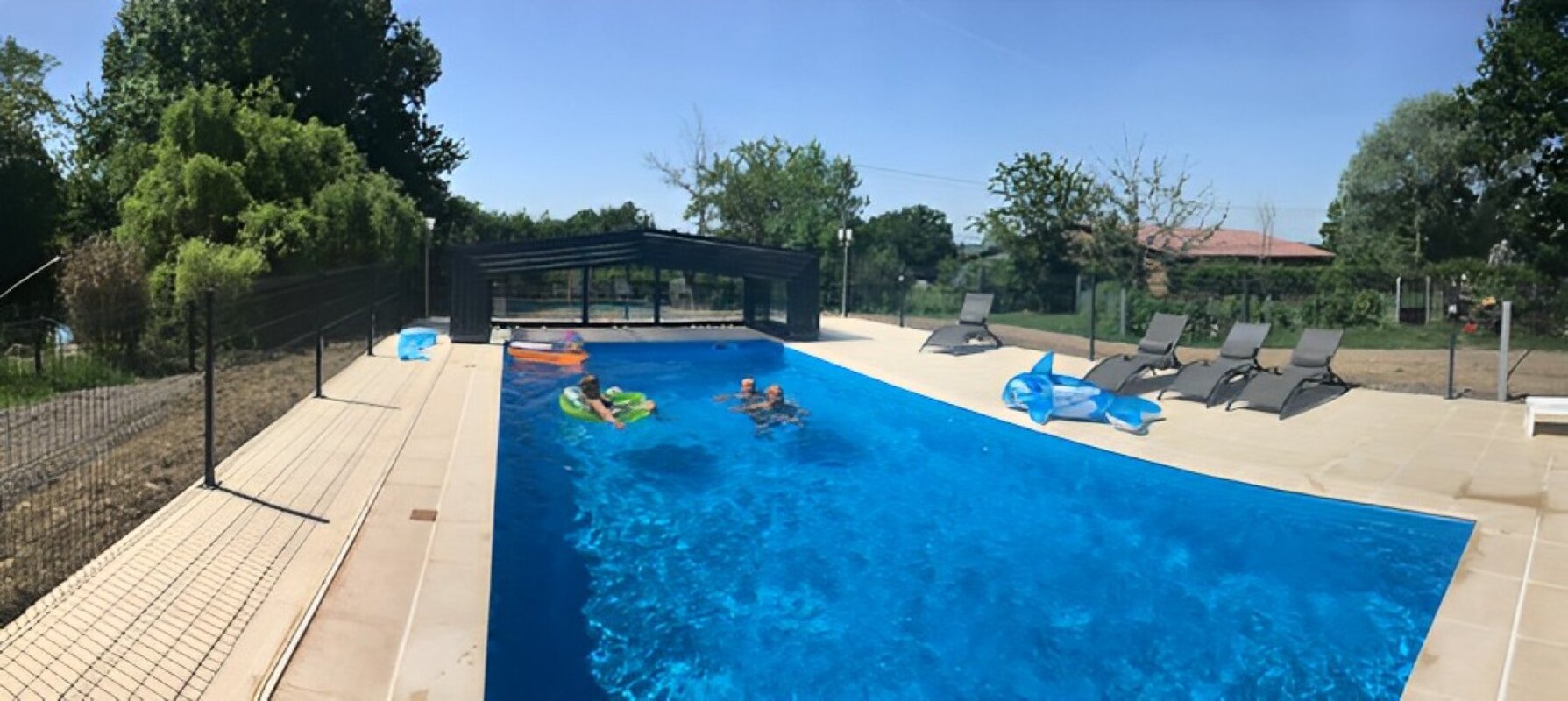 Le gîte est entièrement clôturé. Il comporte la climatisation.