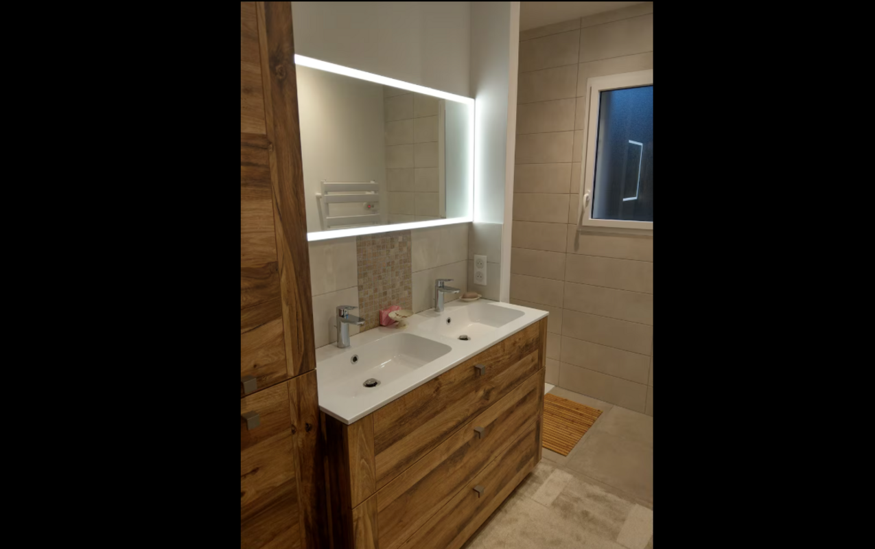 Deux salles de bains modernes ainsi qu’un WC indépendant viennent compléter le confort du logement.