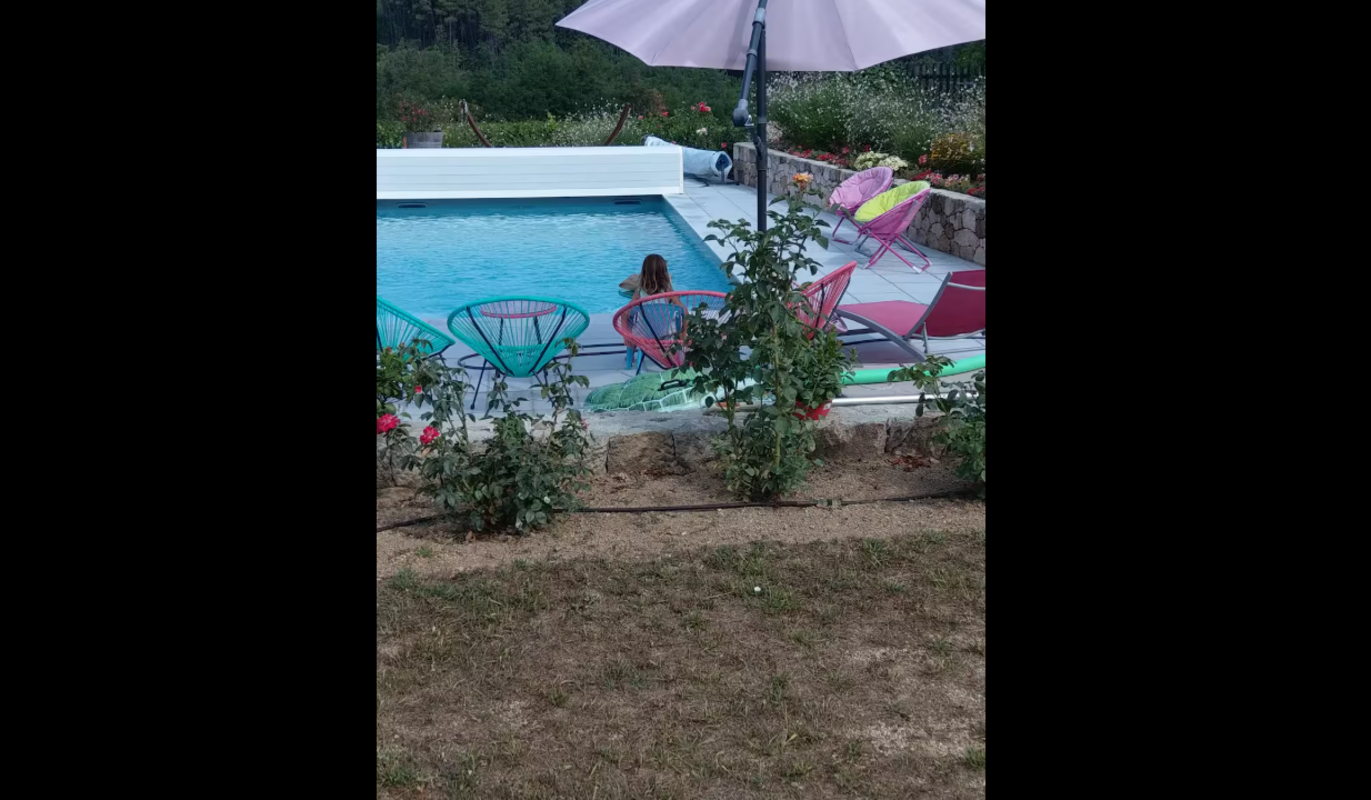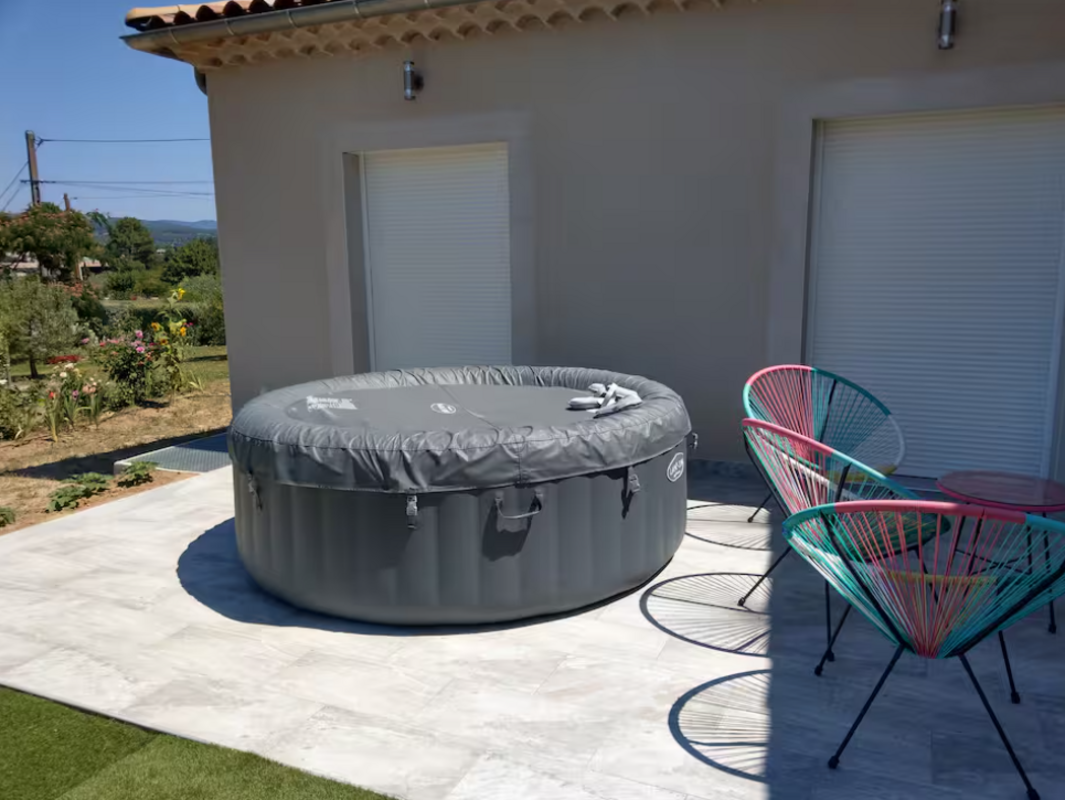 À l’extérieur, vous pourrez vous détendre dans un spa privatif 6 places, tout en profitant d’une vue dégagée et apaisante sur la nature environnante. Une piscine chauffée est également accessible et partagée avec les propriétaires.