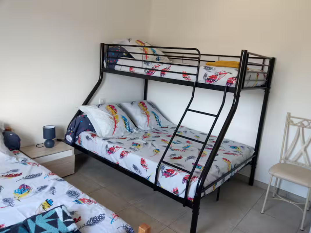 un lit 140x190 ainsi que deux lits 90, également équipée d’une penderie.